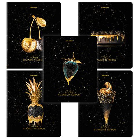 Тетради ДЭК А5 48 л. КОМПЛЕКТ 5 шт. BRAUBERG, скоба, клетка, матовая ламинация, фольга, "Black&Gold", 404677