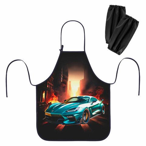 Фартук с нарукавниками для уроков труда ЮНЛАНДИЯ, регулировка по росту, 46х54 см, "Fire car", 273768