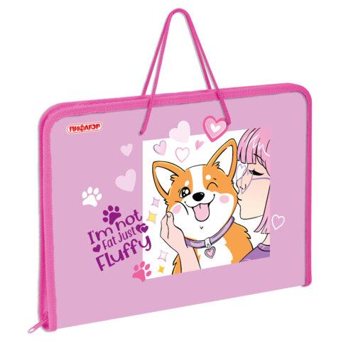 Папка для труда на молнии с ручками ПИФАГОР А4, 1 отделение, пластик, органайзер, "Fluffy akita", 272227