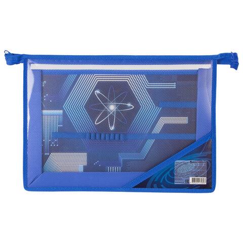 Папка для труда BRAUBERG, А4, 2 отделения, пластик, молния сверху, органайзер, для мальчиков, "Атом", 227122