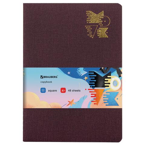 Тетрадь 48 л. в клетку обложка кожзам под рогожку, сшивка, A5 (147х210мм), БОРДОВЫЙ, BRAUBERG MOVE, 403844