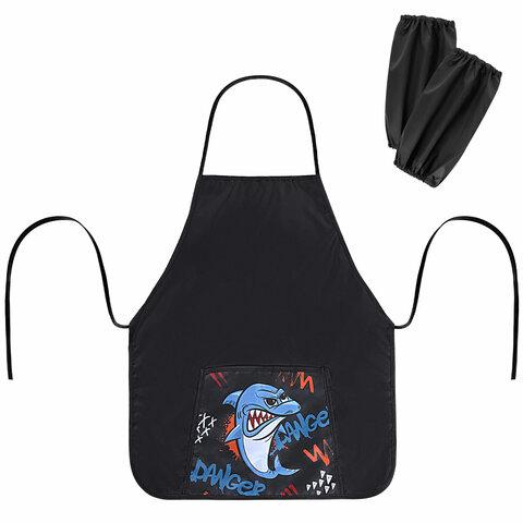 Накидка фартук с нарукавниками для труда ПИФАГОР, 1 карман, 46х54 см, "Angry shark", 272460