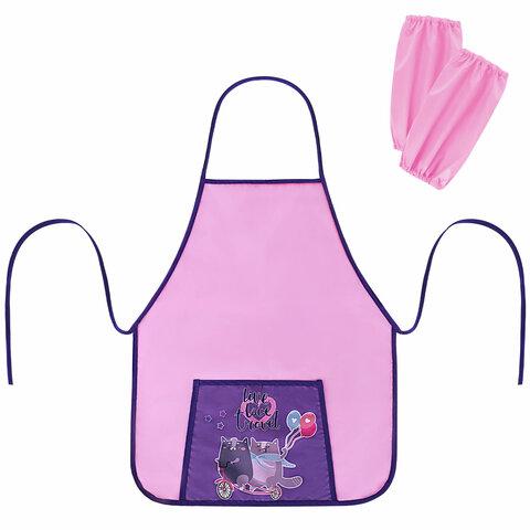 Накидка фартук с нарукавниками для труда BRAUBERG KIDS, 2 кармана, 46x54 см, "Kittens", 272451