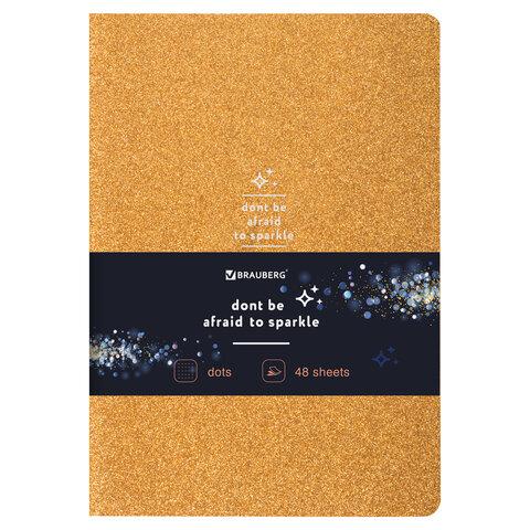 Тетрадь 48 л. в точку обложка кожзам с блестками, сшивка, A5 (147х210мм), ЗОЛОТОЙ, BRAUBERG SPARKLE, 403854