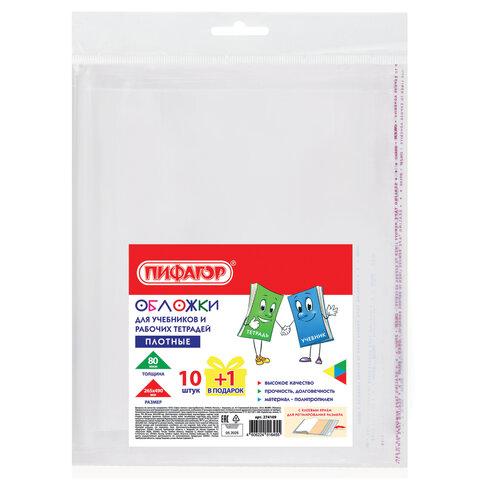 Обложки ПП для учебников и рабочих тетрадей, КЛЕЙКИЙ КРАЙ, НАБОР 10 шт. + 1 шт., 80 мкм, 265x490 мм, ПИФАГОР, 274109