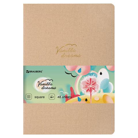 Тетрадь 48 л. в клетку обложка кожзам под лён, сшивка, A5 (147х210мм), БЕЖЕВЫЙ, BRAUBERG PASTEL, 403871