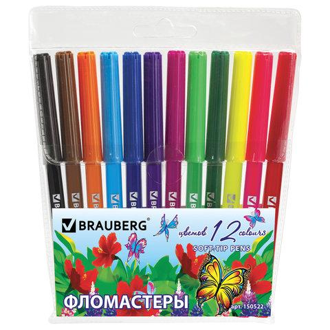 Фломастеры BRAUBERG "Wonderful butterfly", 12 цветов, вентилируемый колпачок, ПВХ-упаковка, 150522