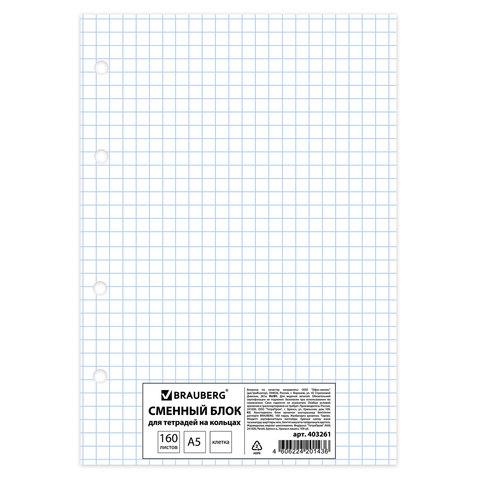 Сменный блок для тетради на кольцах, А5, 160 л., STAFF, "Белый", 403261