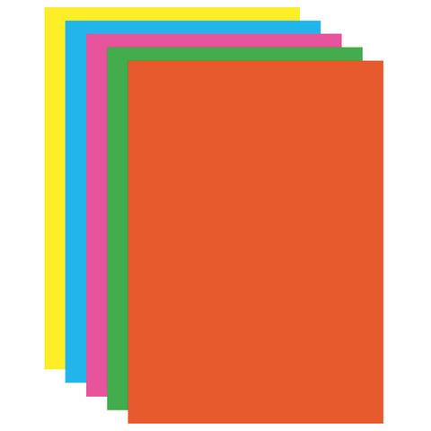 Картон цветной А4 МЕЛОВАННЫЙ (глянцевый), ФЛУОРЕСЦЕНТНЫЙ, 10 листов 5 цветов, в папке, BRAUBERG, 200х290 мм, "Лето", 129918