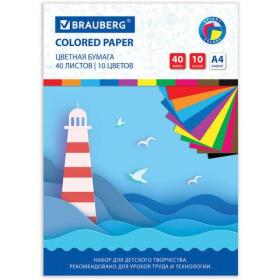 Цветная бумага А4 офсетная, 40 листов 10 цветов, в папке, BRAUBERG, 200х280 мм, "Море", 115169