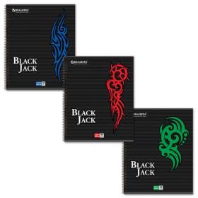 Тетрадь А5, 96 л., BRAUBERG, гребень, клетка, выборочный лак, "БЛЭК ДЖЭК", 401850