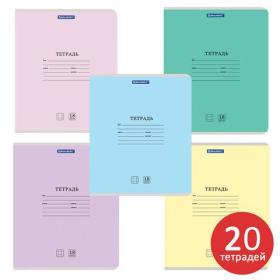 Тетради ДЭК 18 л. КОМПЛЕКТ 20 шт. BRAUBERG "КЛАССИКА NEW", клетка, обложка картон, АССОРТИ (5 видов), 880058