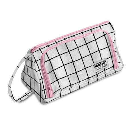 Пенал-косметичка BRAUBERG с ручкой, 1 откидная планка, полиэстер, 22x10х8 см, "Checkered white", 271558