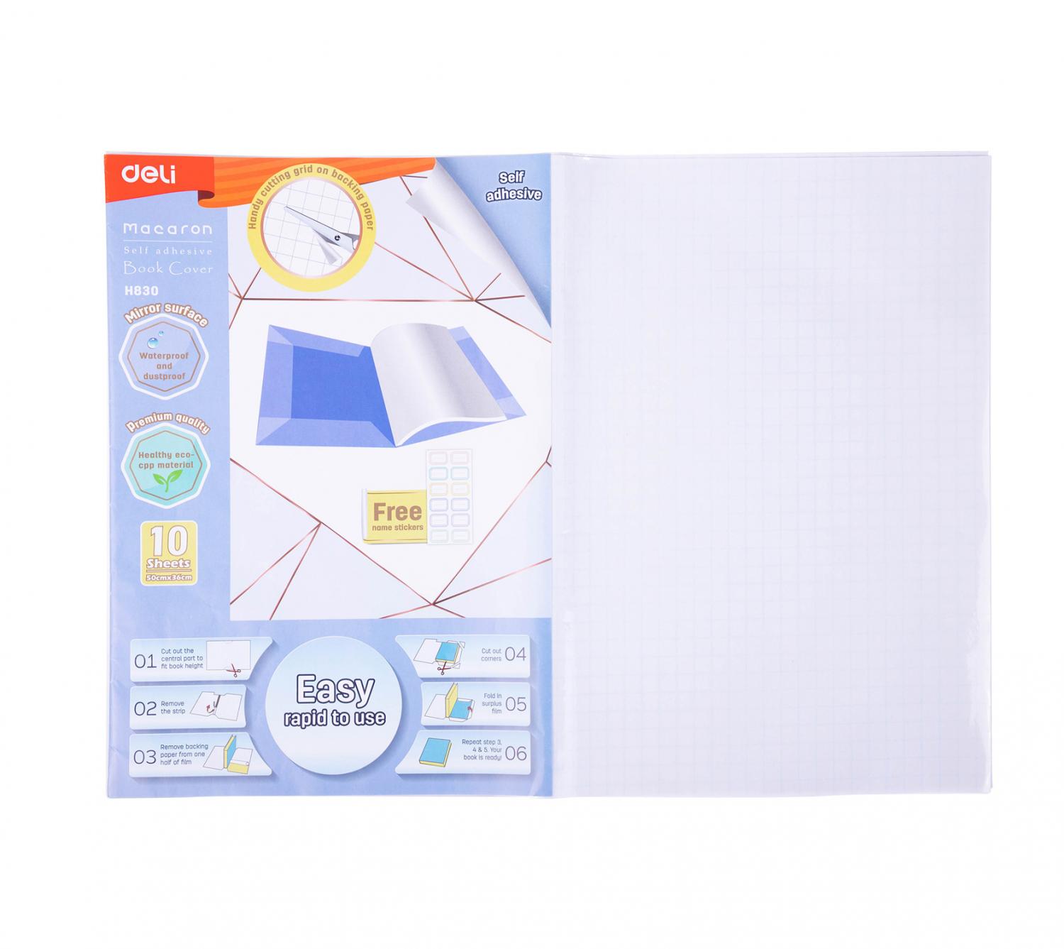 Пленка Deli EH830 Macaron для книги (набор 10шт) ПП 80мкм гладкая прозр. 360х500мм
