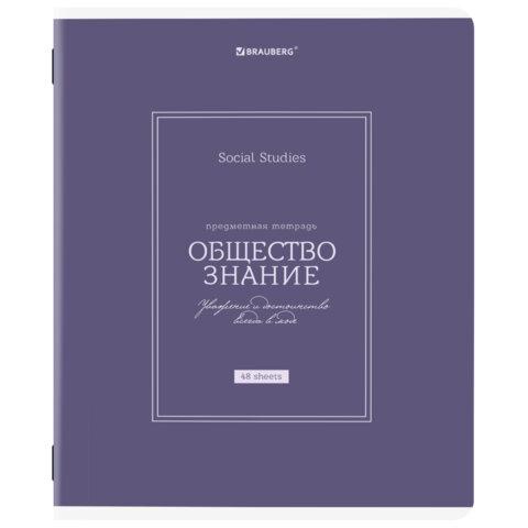 Тетрадь предметная CLASSIC 48 л., рельефный картон, матовая ламинация, ОБЩЕСТВО, клетка, подсказ, BRAUBERG, 405136