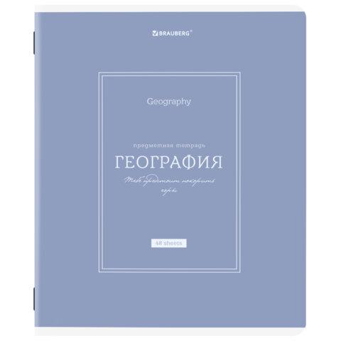 Тетрадь предметная CLASSIC 48 л., рельефный картон, матовая ламинация, ГЕОГРАФИЯ, клетка, подсказ, BRAUBERG, 405139