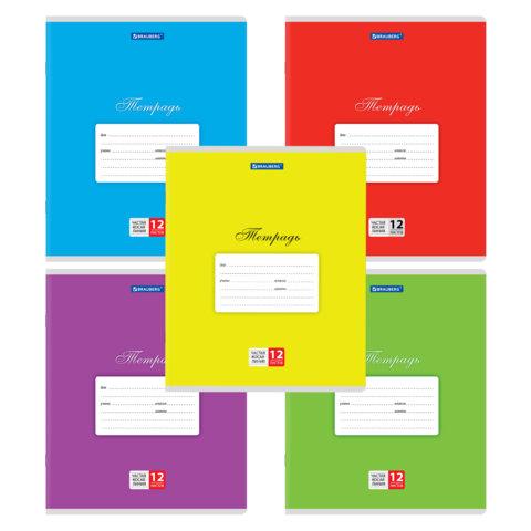 Тетрадь 12 л. BRAUBERG "КЛАССИКА NEW", клетка, обложка картон, АССОРТИ (5 видов), 105682