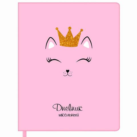 Дневник 1-11 класс 48 л., кожзам (твердая), печать, глиттер, ЮНЛАНДИЯ, "Котик", 107217