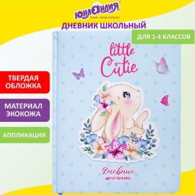 Дневник 1-4 класс 48 л., кожзам (твердая с поролоном), печать, аппликация, ЮНЛАНДИЯ, "Зайчик", 106198