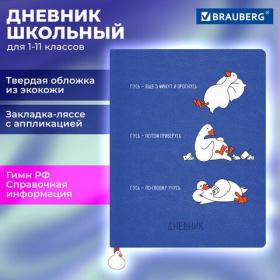 Дневник 1-11 класс 48 л., кожзам (твердая с поролоном), печать, ляссе с аппликацией, BRAUBERG, "Гуси", 107233