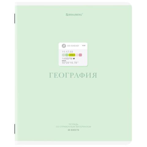 Тетрадь предметная МЕМЫ 48 л., TWIN-лак, ГЕОГРАФИЯ, клетка, подсказ, BRAUBERG, 405100