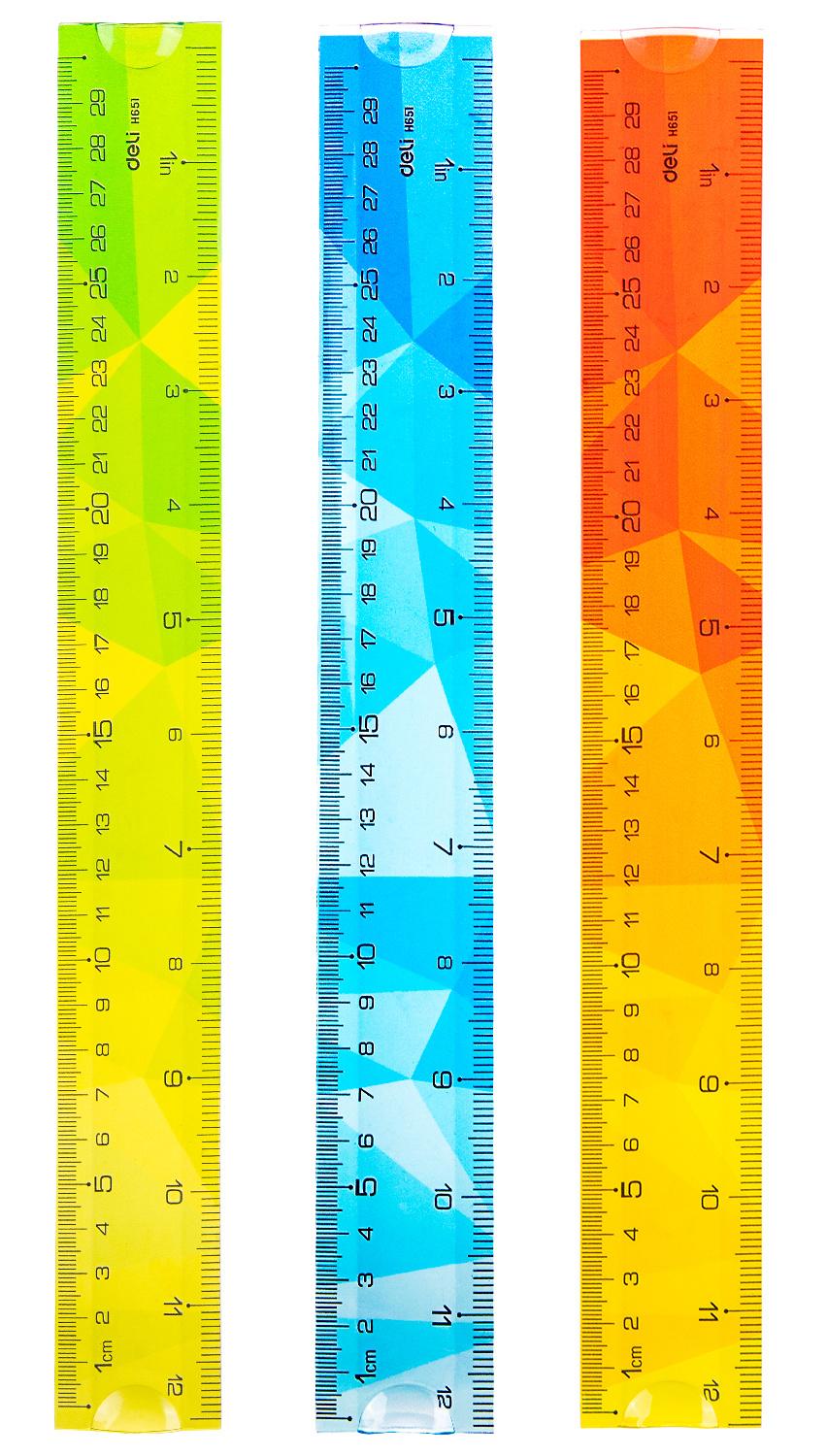 Линейка Deli EH651 пластик дл.30см ассорти гибкая / двухсторонняя шкала