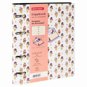 Тетрадь на кольцах А5 (180х220 мм), 80 листов, под кожу, клетка, BRAUBERG VISTA, Meow, 112127