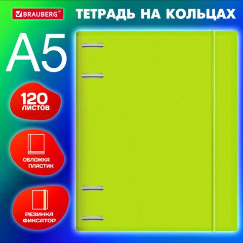 Тетрадь на кольцах А5 175х220 мм, 120 л., пластик, с резинкой, BRAUBERG, Салатовый, 404619