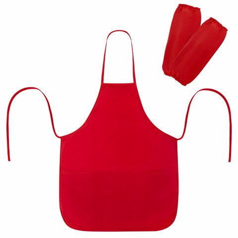 Накидка фартук с нарукавниками для труда ПИФАГОР, 3 кармана, уменьшенный размер, 39х49 см, красный, 270919
