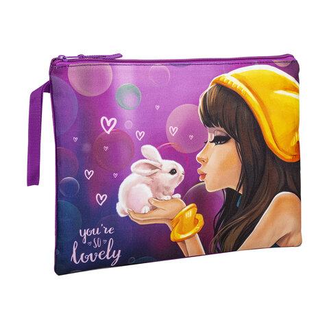 Папка для тетрадей BRAUBERG А4, 1 отделение, полиэстер, на молнии, с ручкой, "Rabbit", 270940