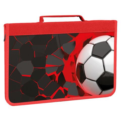 Папка на молнии BRAUBERG А4 с ручкой, с органайзером, 1 отделение, "Black football", 270992