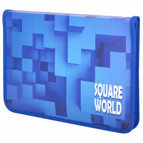 Папка для труда на молнии ЮНЛАНДИЯ А4, 1 отделение, откидная планка, органайзер, "Square world", 270987
