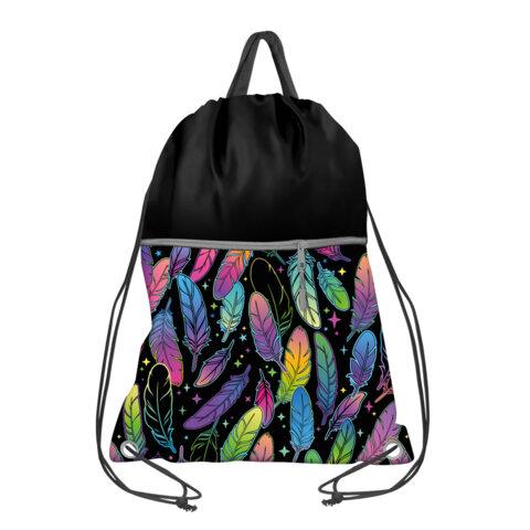 Мешок для обуви BRAUBERG БОЛЬШОЙ, с ручкой, карман на молнии, сетка, 49х41 см, "Feathers", 271057