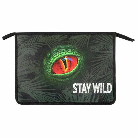Папка для тетрадей ЮНЛАНДИЯ А4, 1 отделение, пластик, на молнии, "Stay wild", 271081