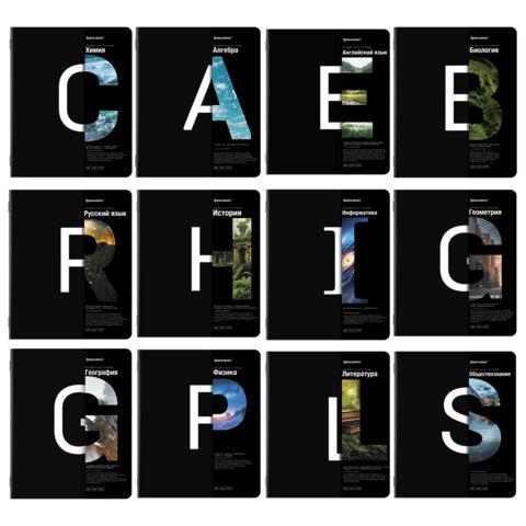 Тетради предметные, КОМПЛЕКТ 12 ПРЕДМЕТОВ, 48 л., матовая ламинация, BRAUBERG, "BLACK&WHITE", 404835