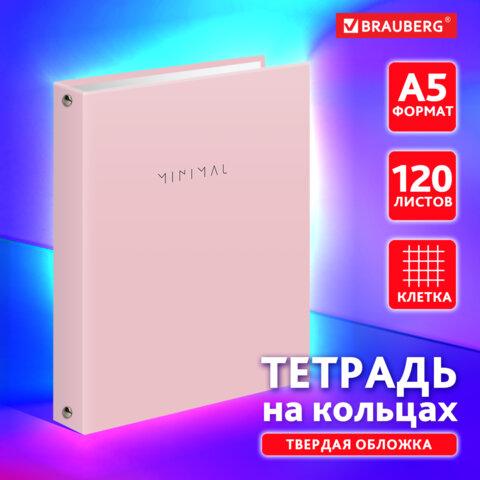Тетрадь на кольцах А5 175х215 мм, 120 л., твердый картон, матовая ламинация, клетка, BRAUBERG "Minimal pink", 404998