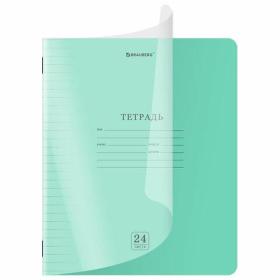 Тетрадь пластиковая обложка (прозрачная) 24 листа, клетка, BRAUBERG "Smart Cover", ЗЕЛЕНАЯ, 405034