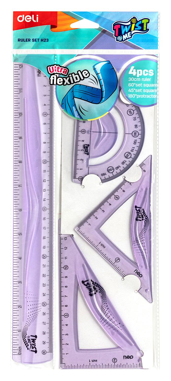 Набор для чертежей Deli EH23 корпус ассорти пластик в компл.:линейка 30см / прямоугольник / треугольник / транспортир