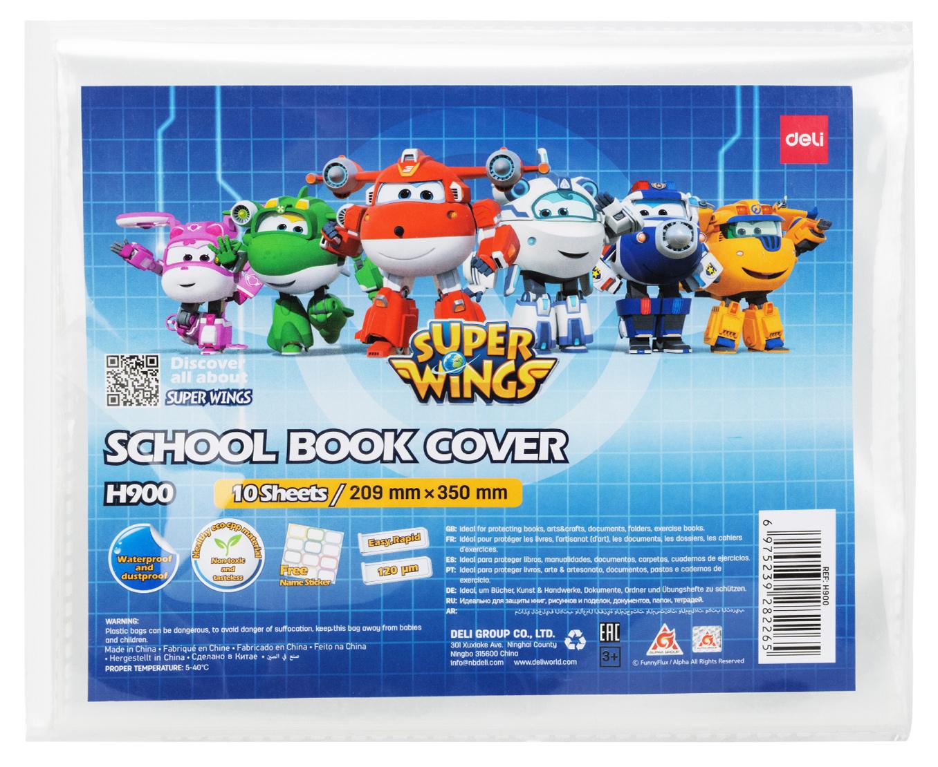 Пленка Deli CH900 Super Wings для книги с липк.сл. (набор 10шт) ПП гладкая прозр. 210x350мм