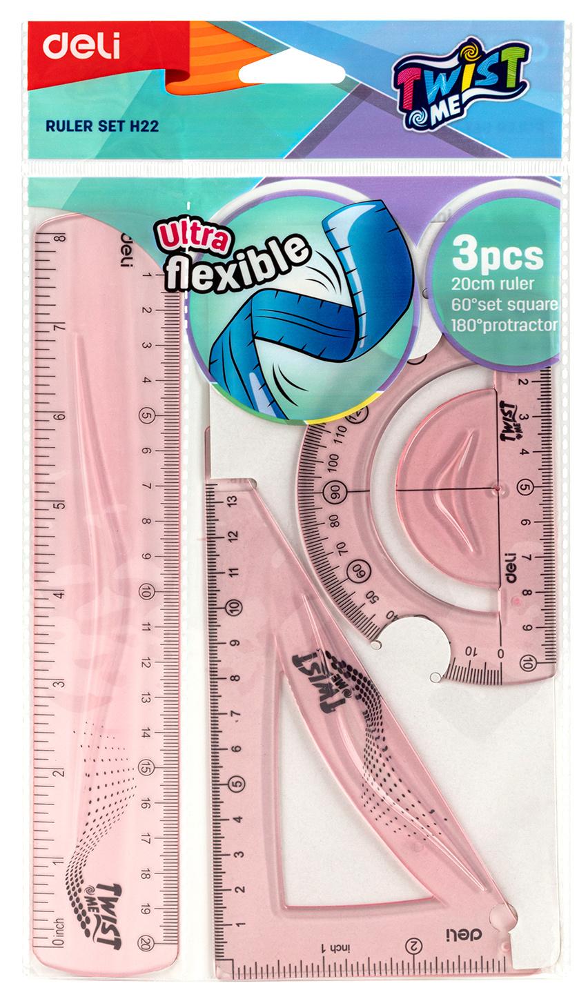 Набор для чертежей Deli EH22 корпус ассорти пластик в компл.:линейка 20см / транспортир / угольник