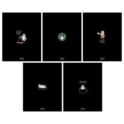 Тетрадь А5 48л. HATBER скоба, клетка, глянцевая ламинация, Coffee Story (микс в спайк, 48Т5лВ1