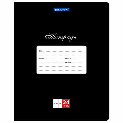 Тетради ДЭК 24 л., КОМПЛЕКТ 10 шт., BRAUBERG "КЛАССИКА", клетка, обложка картон, ЧЕРНАЯ, 107095
