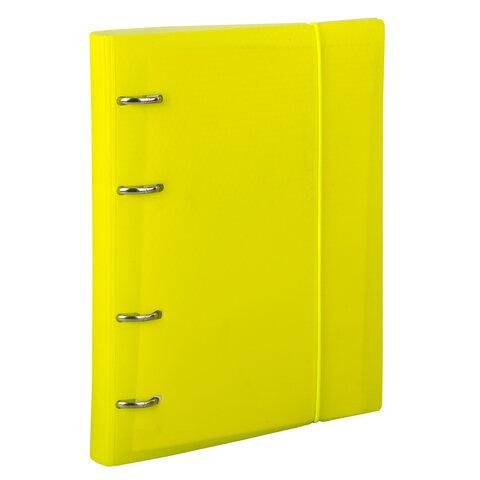 Тетрадь на кольцах А5 175х220 мм, 120 л., пластик, клетка, с резинкой, BRAUBERG, желтая, 403570