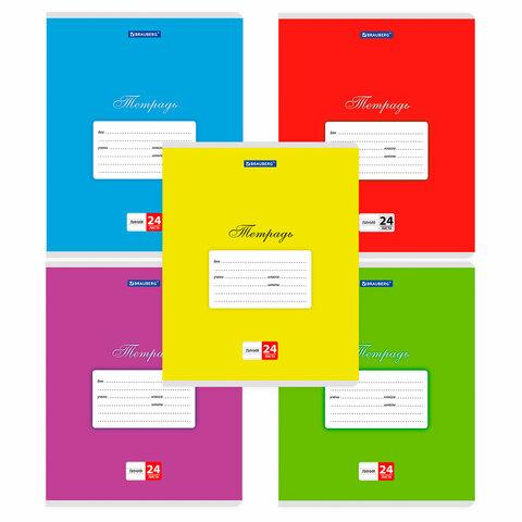 Тетради ДЭК 24 л., КОМПЛЕКТ 10 шт., BRAUBERG "КЛАССИКА", линия, обложка картон, АССОРТИ, 107096