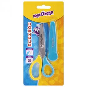 Ножницы ЮНЛАНДИЯ, 135 мм, с футляром для лезвий, мятно-голубые, блистер, 237110