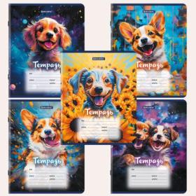 Тетрадь 12 л. BRAUBERG клетка, обложка картон, "Собачки", 107779