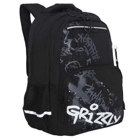 Рюкзак GRIZZLY школьный, анатомическая спинка, 2 отделения, для мальчиков, "STYLE", чёрный, 39х28х20 см, RB-454-1 / 1