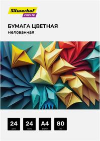 Бумага цветная Silwerhof мелов. 24л. 24цв. A4 Create 80г / м2 обл.мел.бумага ПЭТ на скобе
