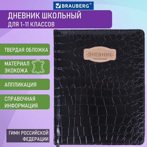 Дневник 1-11 класс 48 л., кожзам (твердая с поролоном), нашивка, BRAUBERG "CROCODILE", черный, 105481