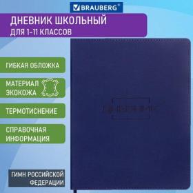 Дневник 1-11 класс 48 л., кожзам (гибкая), термотиснение, BRAUBERG "LATTE", темно-синий, 105442